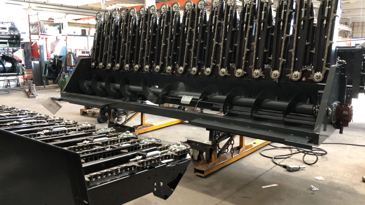 Жатка TECNOMAIS для уборки кукурузы переоборудуется в довольно полноценную жатку для уборки подсолнечника (опция).