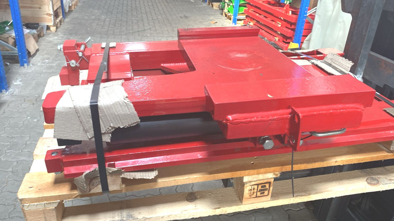 Ротатор ( вращатель вил, опрокидыватель поддонов ) Duevelsdorf (Германия) с выдвижной лапой, которая позволяют удерживать ящики. Опрокидывание осуществляется с помощью гидроцилиндра двухстороннего действия .Угол опрокидывания = 180°, левое вращение.