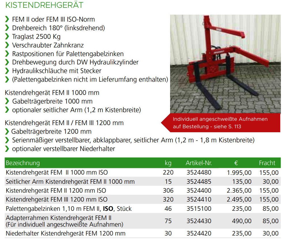 – ротатор с рамкой вил FEM II – 2365 евро Netto